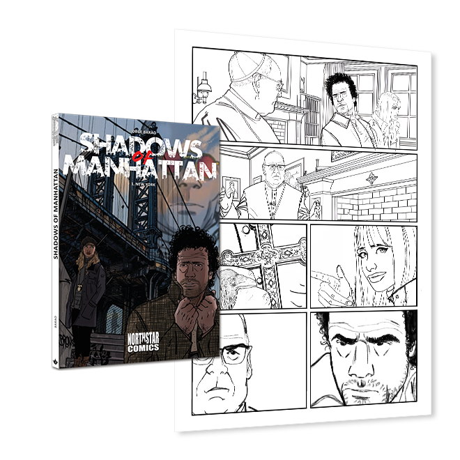 SHADOWS OF MANHATTAN est le premier album 100% réalisé par son auteur : Jorge Barao. Né en 1973, Jorge a débuté sa carrière en créant des mangas, avant de s’orienter vers la bande dessinée franco-belge, puis de rejoindre l’univers des Comics américains. Son style unique et évolutif lui a permis de travailler dans la publicité, où il a pu mettre son talent au service de campagnes publicitaires innovantes, mêlant BD et illustration.